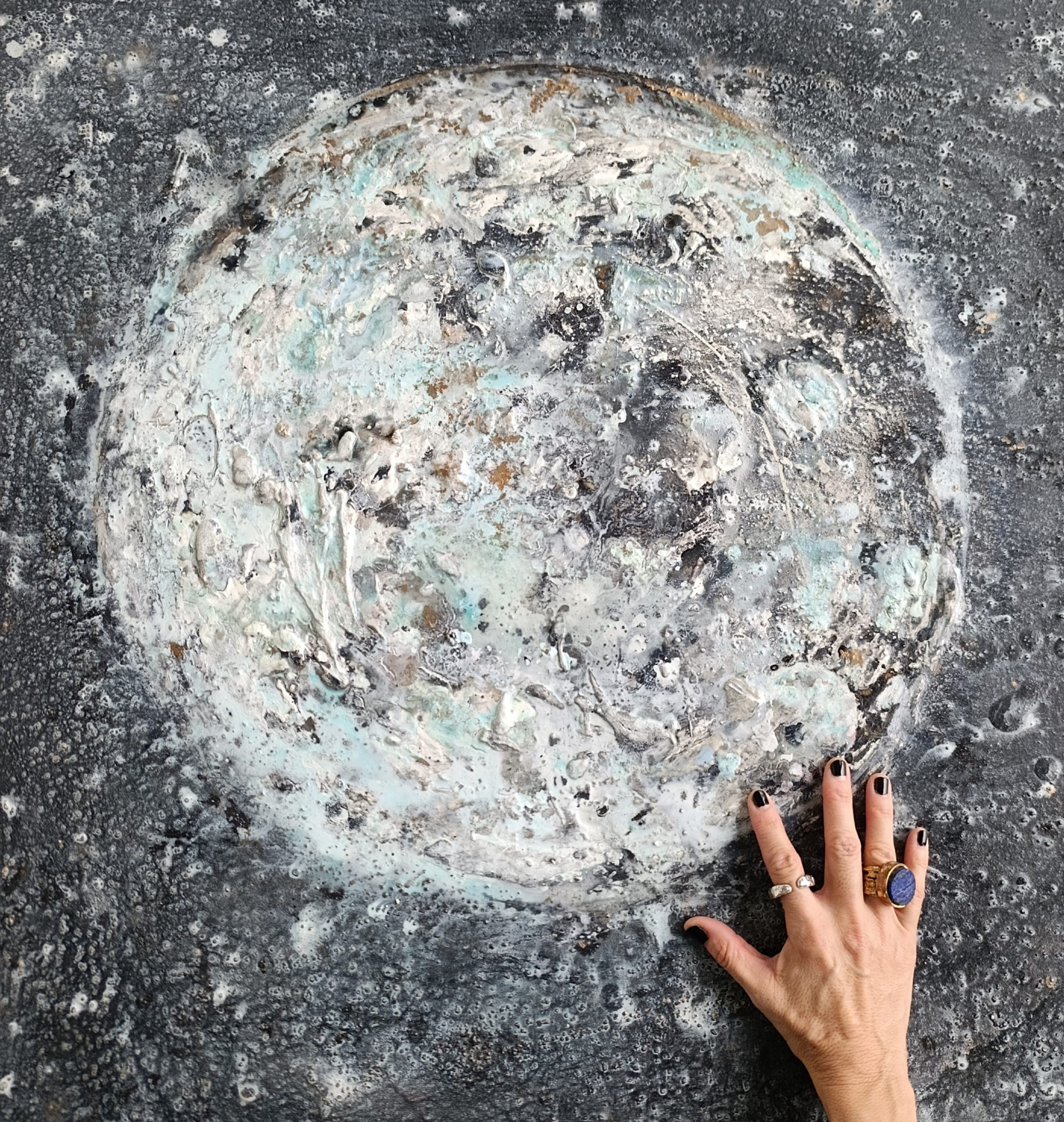 A través de la textura he volgut recrear una lluna que ens desperta el tacte i que, per fi, ens permet acariciar-la.