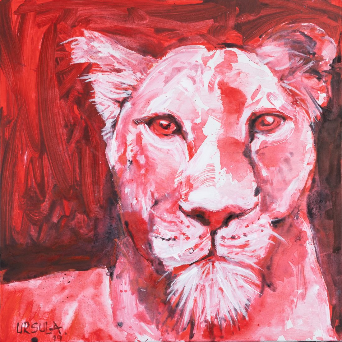 The feast shows a lioness ready to pounce, waiting and staring at us ready to attack. Success is not about luck, it is an attitude. Year 2019 Medium Acrylic on canvas Height/Width/Depth : 70 x 70 x 3,5 cm 27,5 x 27,5 x 1,3 inch Value: 350€ Unique work - Certificate